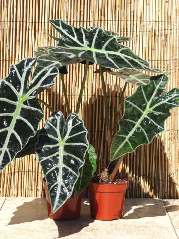 When you receive your new Alocasia, there is no need to worry about planting right away. Your new plant can be stored for a while by simply placing it in a bucket with about a half inch of water in the bottom and moving it to a shady location. You can then add some mulch to keep your plant standing upright. The mulch will also supply nutrients while in storage. This will give you plenty of time to select the ideal location for your new Alocasia.