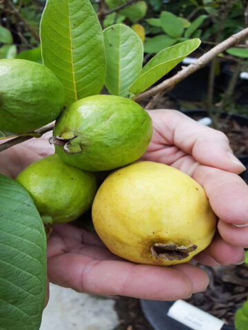 Our plants allow you to enjoy fruit in the first year or so. All the Guava trees we offer are vegetatively propagated from healthy, vigorous, fruit producing mother stock, grown right here in our nursery. This means, you receive an exact clone, true in form and flavor and won’t have to wait four to five years to enjoy fresh homegrown fruit, as is often the case with seed grown or tissue culture plants. Truly a better tree!
