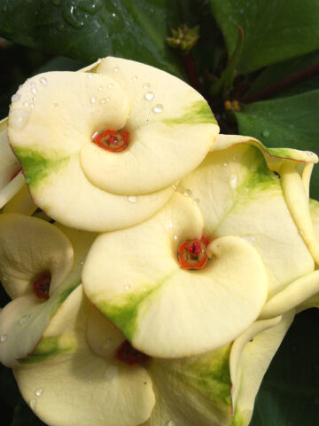 Before leaving, Crown of Thorns are inspected, watered, and pruned. Larger plants, generally those that ship in 8″ pots, will be topped to 36″ or 48″ overall, depending on the variety, if necessary, to facilitate shipping. Your new plants’ pot is then bagged to ensure that the soil stays in the pot and not loose in the box. Plants are tissue or kraft paper wrapped and generally secured in place with natural biodegradable peanuts.