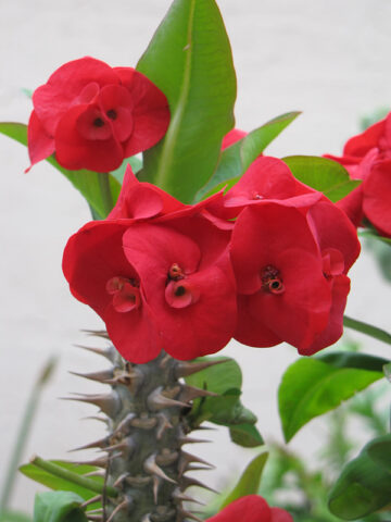 Before leaving, Crown of Thorns are inspected, watered, and pruned. Larger plants, generally those that ship in 8″ pots, will be topped to 36″ or 48″ overall, depending on the variety, if necessary, to facilitate shipping. Your new plants’ pot is then bagged to ensure that the soil stays in the pot and not loose in the box. Plants are tissue or kraft paper wrapped and generally secured in place with natural biodegradable peanuts.