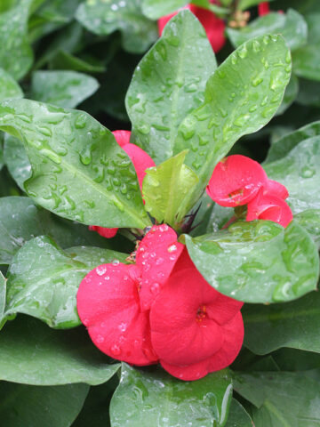 Thai Supreme is another neon red crown of thorns with clusters of 1 inch blooms. Thai crown of thorns feature one of the largest blooms of the crown of thrones family along with large leaves and stems. Crown of thorns is an excellent plant choice for courtyards and sun rooms where exposed to warmth and bright light to achieve full bloom potential.