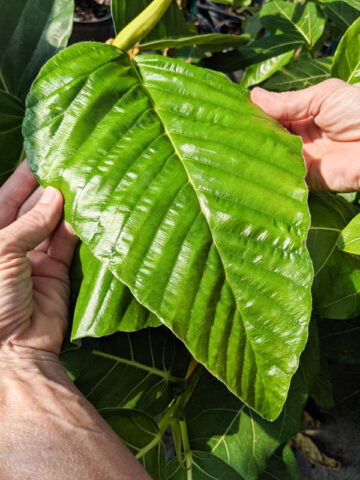 The growth rate of Bussei Pleated Leaf Ficus will vary greatly depending on soil type, sunlight, temperature and other factors. A few leaves are often trimmed prior to shipping to reduce transpiration and travel stress.