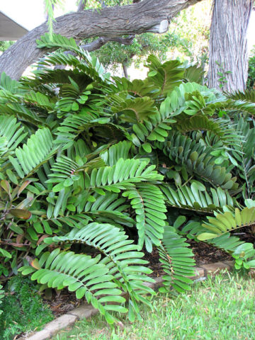 Super heavy duty leaves – Not actually a palm at all, but rather a cycad, a species which can be traced back millions of years. Cardboard Palms are happy in pots or in ground. Deep dark green leaves are stiff and flat (like pieces of cardboard) on upright, wide spreading stems making a unique and attractive ground bush.