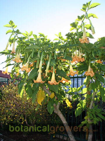 Our plants allow you to enjoy large blooms in the first year or so. All the Brugmansia we offer are vegetatively propagated from healthy, vigorous, flowering mother stock, grown right here in our nursery. This means, you receive an exact clone, true in form and won’t have to wait four to five years to enjoy the beautiful blooms, as is often the case with seed grown or tissue culture plants. Truly a better bloom!