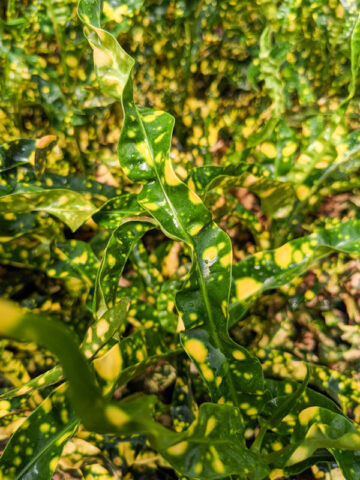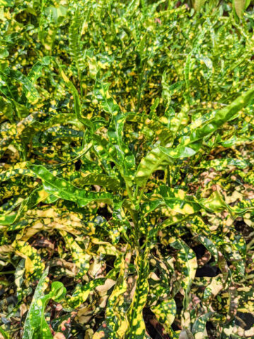 Before leaving, Croton plants are inspected, watered, and pruned. Larger plants, generally those that ship in 8″ pots, will be topped to 36″ or 48″ overall, depending on the variety, if necessary, to facilitate shipping. Your new plants’ pot is then bagged to ensure that the soil stays in the pot and not loose in the box. Plants are tissue or kraft paper wrapped and generally secured in place with natural biodegradable peanuts.
