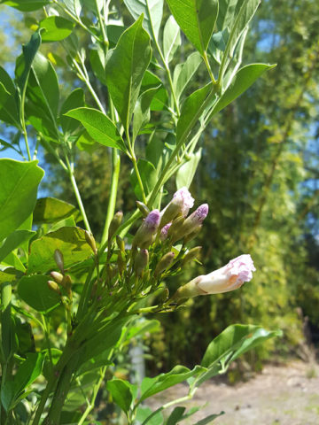 The growth rate of Dwarf Jasmine Peep Thong will vary greatly depending on soil type, sunlight, temperature and other factors. A few leaves are often trimmed prior to shipping to reduce transpiration and travel stress.