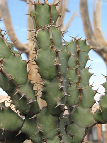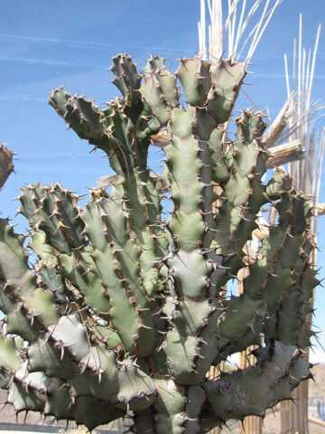 Before leaving, Euphorbia are inspected, watered, and pruned. Larger plants, generally those that ship in 8″ pots, will be topped to 36″ or 48″ overall, depending on the variety, if necessary, to facilitate shipping. Your new plants’ pot is then bagged to ensure that the soil stays in the pot and not loose in the box. Plants are tissue or kraft paper wrapped and generally secured in place with natural biodegradable peanuts.