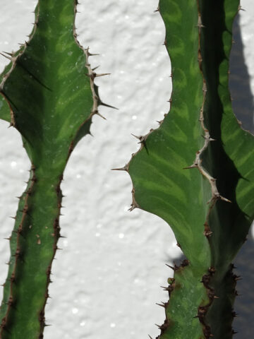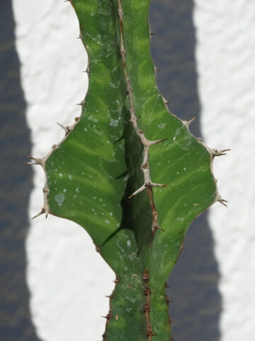 Before leaving, Euphorbia are inspected, watered, and pruned. Larger plants, generally those that ship in 8″ pots, will be topped to 36″ or 48″ overall, depending on the variety, if necessary, to facilitate shipping. Your new plants’ pot is then bagged to ensure that the soil stays in the pot and not loose in the box. Plants are tissue or kraft paper wrapped and generally secured in place with natural biodegradable peanuts.