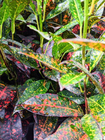 Before leaving, Croton plants are inspected, watered, and pruned. Larger plants, generally those that ship in 8″ pots, will be topped to 36″ or 48″ overall, depending on the variety, if necessary, to facilitate shipping. Your new plants’ pot is then bagged to ensure that the soil stays in the pot and not loose in the box. Plants are tissue or kraft paper wrapped and generally secured in place with natural biodegradable peanuts.