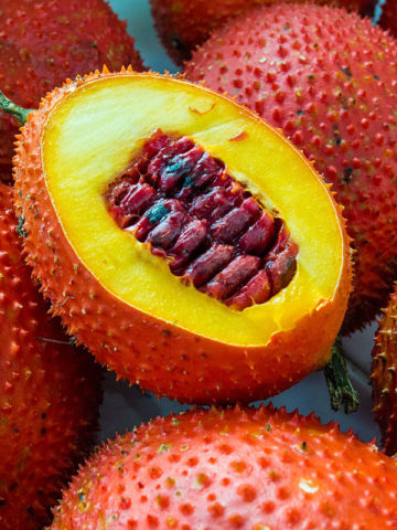 The growth rate of Gac Fruit will vary greatly depending on soil type, sunlight, temperature and other factors. A few leaves are often trimmed prior to shipping to reduce transpiration and travel stress.