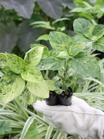 The growth rate, bloom size and color of Gold Splash Barleria will vary greatly depending on soil type, sunlight, temperature and other factors. A few leaves are often trimmed prior to shipping to reduce transpiration and travel stress.