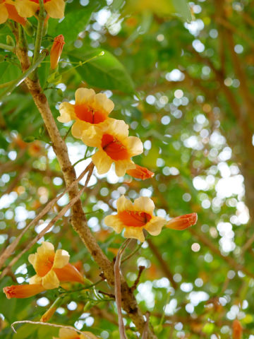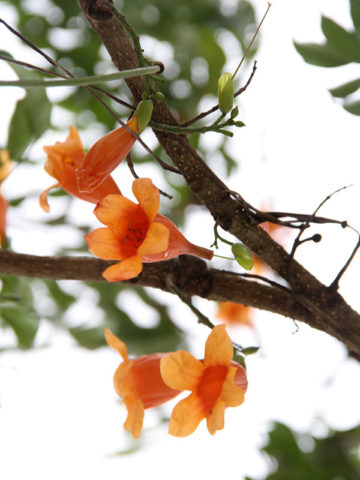 Tropical looking brilliant apricot orange colored flowers are absolutely breathtaking. This rare small tree only reaches to about 15 feet and has heavily spaced pinnate papery leaves, giving a light and airy appearance to the tree.