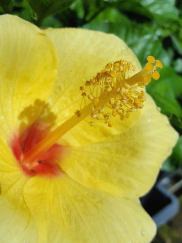 Super creamy yellow petals are delicately cup shaped with a small salmon orange center. The erect stamen has a monochromatic coloration making it almost invisible. In cooler climates, Hibiscus make one of the easiest to grow container plants and are best suited to grow in sunny areas of your porch or patio. In warmer climates, flowering is a nonstop show in the tropical garden.