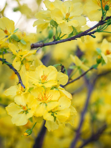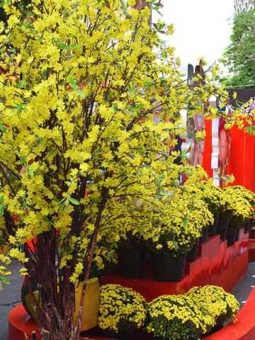 Before leaving, Hoa Mai, Mai Vang are inspected, watered, and pruned. Larger plants, generally those that ship in 8″ pots, will be topped to 36″ or 48″ overall, depending on the variety, if necessary, to facilitate shipping. Your new plants’ pot is then bagged to ensure that the soil stays in the pot and not loose in the box. Plants are tissue or kraft paper wrapped and generally secured in place with natural biodegradable peanuts.
