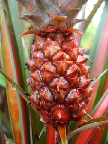 The growth rate of Brazilian Sunset Pineapple will vary greatly depending on soil type, sunlight, temperature and other factors. A few leaves are often trimmed prior to shipping to reduce transpiration and travel stress.