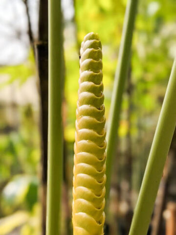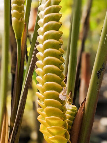Our Bronze Rattle plants allow you to enjoy amazing tropical blooms in the first year or so. All the Calathea we offer are vegetatively propagated from healthy flowering mother stock, grown right here in our nursery. This means, you receive an exact clone, true in form and bloom and won’t have to wait years to enjoy fresh tropical flowers, as is often the case with seed grown or tissue culture plants. Truly a better plant!