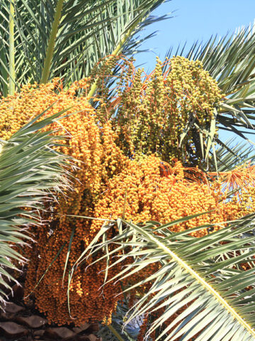 (Lg. Specimen, 6” Pot) In every respect the hardiest of all the date palms, this rare species is only known from a few small sites on the Greek island of Crete and in southern Turkey. It is somewhat similar to the true Date Palm but has a particularly compact appearance with silvery-gray, spiky leaves and clustering trunks. Its fruits are sweetish and edible but not as delicious as true dates and MUCH smaller. The Cretan Date Palm is suitable for temperate and subtropical areas and will take more frost than any other Phoenix palm. Our seeds originate from wild populations on Crete.