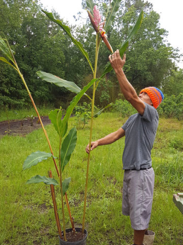 Before leaving, Alpinia Ginger are inspected, watered, and pruned. Larger plants, generally those that ship in 8″ pots, will be topped to 36″ or 48″ overall, depending on the variety, if necessary, to facilitate shipping. Your new plants’ pot is then bagged to ensure that the soil stays in the pot and not loose in the box. Plants are tissue or kraft paper wrapped and generally secured in place with natural biodegradable peanuts.