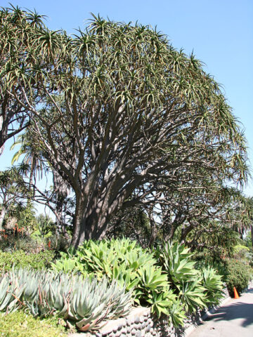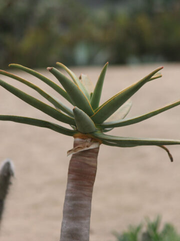 The growth rate of Giant Tree Aloe will vary greatly depending on soil type, sunlight, temperature and other factors. A few leaves are often trimmed prior to shipping to reduce transpiration and travel stress.