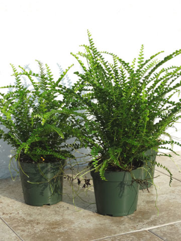 Before leaving, fern plants are inspected, watered, and pruned. Larger plants, generally those that ship in 8″ pots, will be topped to 36″ or 48″ overall, depending on the variety, if necessary to facilitate shipping. Your new plants’ pot is then bagged to ensure that the soil stays in the pot and not loose in the box. Plants are tissue or kraft paper wrapped and secured in place with natural biodegradable peanuts.