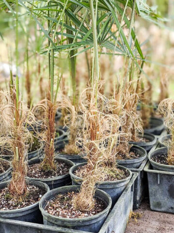 When you receive your new palm, there is no need to worry about planting right away. Your new plant can be stored for a while by simply placing it in a bucket with about a half inch of water in the bottom and moving it to a shady location. You can then add some mulch to the bucket to keep your plant standing upright. The mulch will also supply nutrients while in storage. This will give you plenty of time to select the ideal location for your new palm.