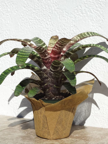 Before leaving, Bromeliad are inspected, watered, and pruned. Larger plants, generally those that ship in 8″ pots, will be topped to 36″ or 48″ overall, depending on the variety, if necessary, to facilitate shipping. Your new plants’ pot is then bagged to ensure that the soil stays in the pot and not loose in the box. Plants are tissue or kraft paper wrapped and generally secured in place with natural biodegradable peanuts.