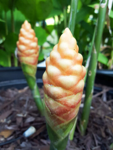 Our Tail Feather plants allow you to enjoy amazing tropical blooms in the first year or so. All the Zingiber Ginger we offer are vegetatively propagated from healthy flowering mother stock, grown right here in our nursery. This means, you receive an exact clone, true in form and bloom and won’t have to wait years to enjoy fresh tropical flowers, as is often the case with seed grown or tissue culture plants. Truly a better plant!