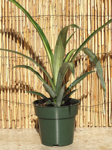 Before leaving, Variegata Royal Hawaiian Pineapple are inspected, watered, and pruned. Larger plants, generally those that ship in 8″ pots, will be topped to 36″ or 48″ overall, depending on the variety, if necessary, to facilitate shipping. Your new plants’ pot is then bagged to ensure that the soil stays in the pot and not loose in the box. Plants are tissue or kraft paper wrapped and generally secured in place with natural biodegradable peanuts.