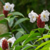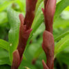 Delicate deep maroon reed like stems are surrounded by bicolored leaves. This ginger is a 2 foot compact grower. In ground or in a container Costus grow vigorously when provided with moist well drained soil. These gingers are heavy feeders and grow at their optimum potential when fertilized regularly. Very tropical and easy to grow.