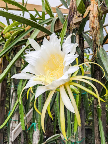 When you receive your new Dragon Fruit Cactus, there is no need to worry about planting right away. Your new plant can be stored for a while by simply placing it in a bucket and moving it to a shady location, simply water when dry. This will give you plenty of time to select the ideal location for your new Dragon Fruit Cactus. This Dragon Fruit Cactus in particular is well rooted, grown and shipped in a 2″x 2″x 7″ tall pot allowing for deeper roots and faster growth.