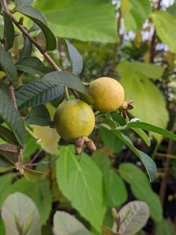 Before leaving, Guava are inspected, watered, and pruned. Larger plants, generally those that ship in 8″ pots, will be topped to 36″ or 48″ overall, depending on the variety, if necessary, to facilitate shipping. Your new plants’ pot is then bagged to ensure that the soil stays in the pot and not loose in the box. Plants are tissue or kraft paper wrapped and generally secured in place with natural biodegradable peanuts.