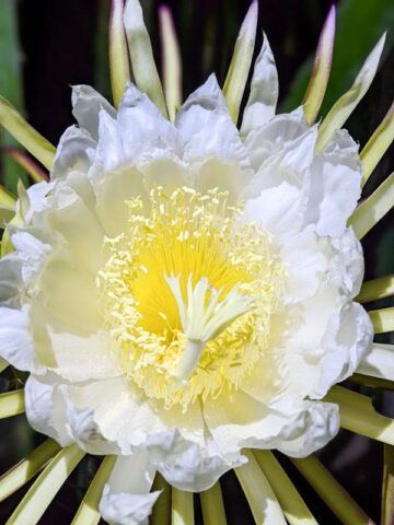 Before leaving, Dragon Fruit Cactus are inspected, watered, and pruned. Larger plants, generally those that ship in 8″ pots, will be topped to 36″ or 48″ overall, depending on the variety, if necessary, to facilitate shipping. Your new plants’ pot is then bagged to ensure that the soil stays in the pot and not loose in the box. Plants are tissue or kraft paper wrapped and generally secured in place with natural biodegradable peanuts.