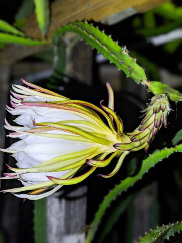 Dragon Fruit Cactus will continue to grow indefinitely if the roots can attach themselves to moist organic matter, wooden post or burlap wrapped totem. The growth rate, flowering, and fruit production of Original Red will vary greatly depending on soil type, humidity, sunlight, temperature and other factors. A few stems may be trimmed prior to shipping to reduce transpiration and travel stress.