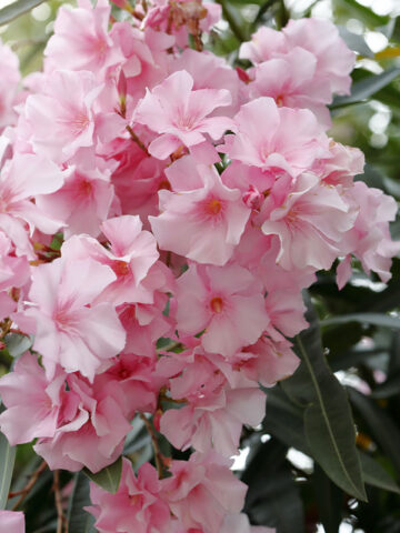 The growth rate, bloom size and color of Pale Pink Oleander will vary greatly depending on soil type, sunlight, temperature and other factors. A few leaves are often trimmed prior to shipping to reduce transpiration and travel stress.