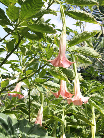 Our plants allow you to enjoy large blooms in the first year or so. All the Brugmansia we offer are vegetatively propagated from healthy, vigorous, flowering mother stock, grown right here in our nursery. This means, you receive an exact clone, true in form and won’t have to wait four to five years to enjoy the beautiful blooms, as is often the case with seed grown or tissue culture plants. Truly a better bloom!