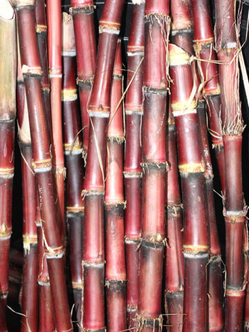 Sugarcane Polynesian Purple Plant, Discovered by one of our botanists in our Florida grove “whats with the cool purple one?” This nature made smoky purple leafed Sugarcane is finally for sale in limited quantity. Its color appears to be stable even through plants started from cane cutting. Grows to a height of 12 to 15 feet then sends out a plume-like flower with silky-hairy feathery like spikes.