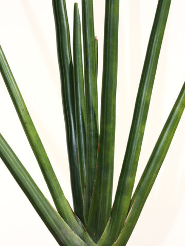 Before leaving, Sansevieria are inspected, watered, and pruned. Larger plants, generally those that ship in 8″ pots, will be topped to 36″ or 48″ overall, depending on the variety, if necessary, to facilitate shipping. Your new plants’ pot is then bagged to ensure that the soil stays in the pot and not loose in the box. Plants are tissue or kraft paper wrapped and generally secured in place with natural biodegradable peanuts.