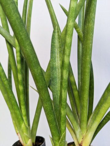 Before leaving, Sansevieria are inspected, watered, and pruned. Larger plants, generally those that ship in 8″ pots, will be topped to 36″ or 48″ overall, depending on the variety, if necessary, to facilitate shipping. Your new plants’ pot is then bagged to ensure that the soil stays in the pot and not loose in the box. Plants are tissue or kraft paper wrapped and generally secured in place with natural biodegradable peanuts.