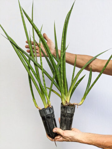 When you receive your new Sansevieria, there is no need to worry about planting right away. Your new plant can be stored for a while by simply placing it in a tray and moving it to a shady location, simply water when dry. This will give you plenty of time to select the ideal location for your new Sansevieria.