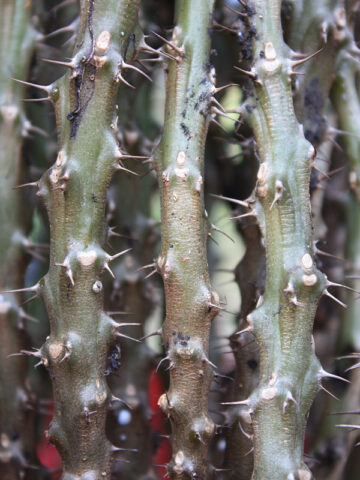 When you receive your new Crown of Thorns, there is no need to worry about planting right away. Your new plant can be stored for a while by simply placing it in a tray and moving it to a shady location, simply water when dry. This will give you plenty of time to select the ideal location for your new Crown of Thorns.