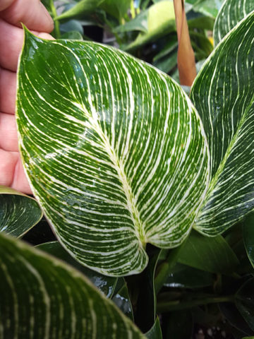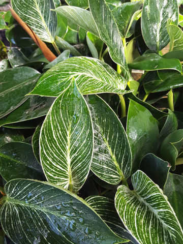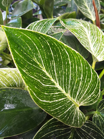 Philodendron Birkin Variegata is an absolutely stunning Philodendron with beautiful pure white pinstriped leaves. This is a somewhat smaller, more manageable variety of Philodendron, highly recommended for indoor growing. When allowed to climb, the maturing foliage can grow 6 to 8 inches in diameter with the iconic pinstriped appearance. A Philodendron lovers must have!
