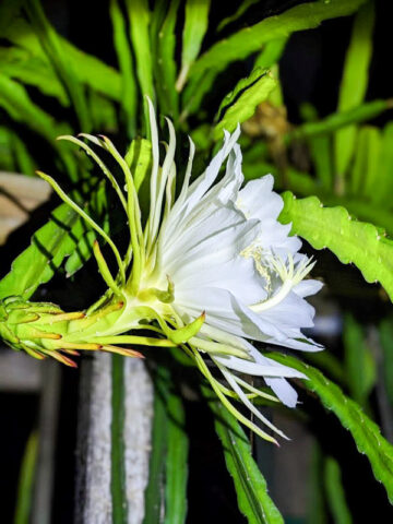 Dragon Fruit Cactus will continue to grow indefinitely if the roots can attach themselves to moist organic matter, wooden post or burlap wrapped totem. The growth rate, flowering, and fruit production of Sweet Delight will vary greatly depending on soil type, humidity, sunlight, temperature and other factors. A few stems may be trimmed prior to shipping to reduce transpiration and travel stress.