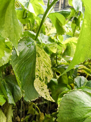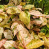 Ruffles and curls make Tahitian Gold a best seller. Curly deep green leaves have serrated margins with white coloration and a mild spattering of white on the leaves as well. Tahitian Gold is a great on the patio. This colorful upright bush also known as the copper plant can reach heights of 10 feet or more. Acalypha, a South Pacific Native, has many variations in both form and color, they will add a tropical feel to any space.