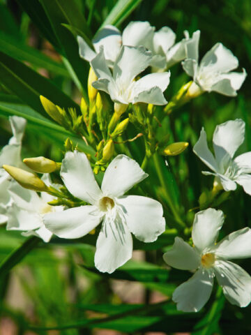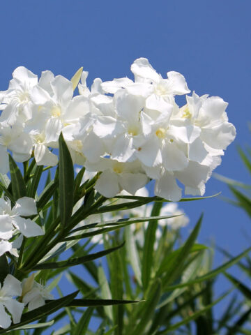 The growth rate, bloom size and color of Tropical White Oleander will vary greatly depending on soil type, sunlight, temperature and other factors. A few leaves are often trimmed prior to shipping to reduce transpiration and travel stress.