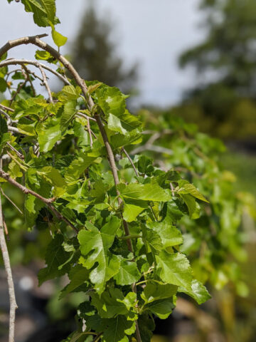 Before leaving, Mulberries are inspected, watered, and pruned. Larger plants, generally those that ship in 8″ pots, will be topped to 36″ or 48″ overall, depending on the variety, if necessary, to facilitate shipping. Your new plants’ pot is then bagged to ensure that the soil stays in the pot and not loose in the box. Plants are tissue or kraft paper wrapped and generally secured in place with natural biodegradable peanuts.