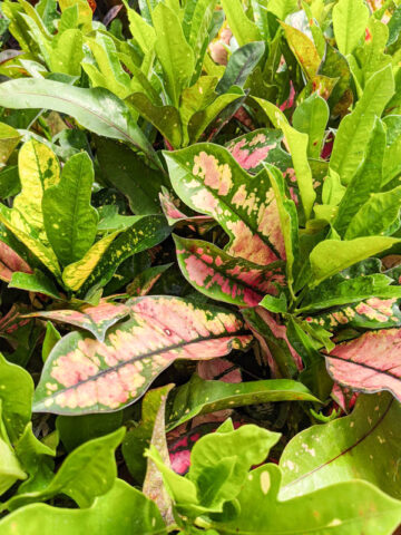 Before leaving, Croton plants are inspected, watered, and pruned. Larger plants, generally those that ship in 8″ pots, will be topped to 36″ or 48″ overall, depending on the variety, if necessary, to facilitate shipping. Your new plants’ pot is then bagged to ensure that the soil stays in the pot and not loose in the box. Plants are tissue or kraft paper wrapped and generally secured in place with natural biodegradable peanuts.