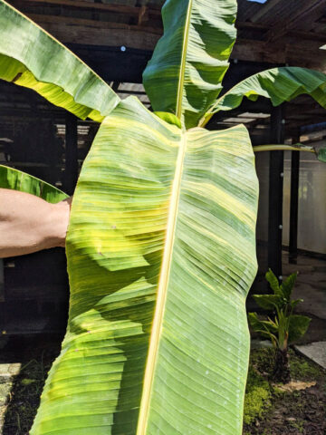 Before leaving, bananas are inspected, watered, and pruned. Larger plants, generally those that ship in 8″ pots, will be topped to 36″ or 48″ overall, depending on the variety, if necessary, to facilitate shipping. Your new plants’ pot is then bagged to ensure that the soil stays in the pot and not loose in the box. Plants are tissue or kraft paper wrapped and generally secured in place with natural biodegradable peanuts.