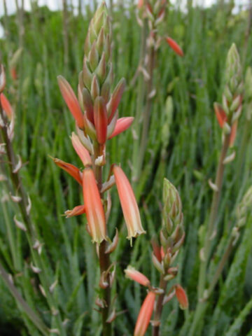 Blue Elf is a compact low growing sun loving aloe and like the name suggests has bluish-gray green, narrow, upright leaves that will sport reddish tips in the heat of summer. We consider this Aloe to be virtually hands-off and care free due to its high drought tolerance, acceptance of a variety of soils and its extreme ability to multiply fast, filling in small garden spaces and pots efficiently. Its super easy to pluck pups for sharing with friends and family and just basically a great plant to grow.