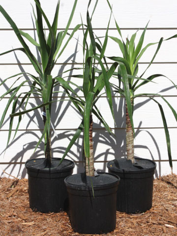 When you receive your new Dracaena, there is no need to worry about planting right away. Your new plant can be stored for a while by simply placing it in a bucket with about a half inch of water in the bottom and moving it to a shady location. You can then add some mulch to the bucket to keep your plant standing upright. The mulch will also supply nutrients while in storage. This will give you plenty of time to select the ideal location for your new Dracaena.