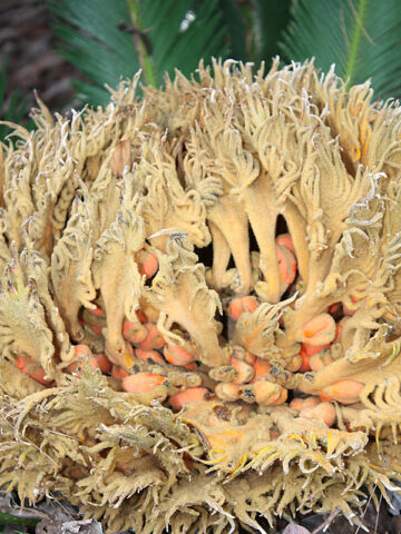 Before leaving, King Sago Palms are inspected, watered, and pruned. Larger plants, generally those that ship in 8″ pots, will be topped to 36″ or 48″ overall, depending on the variety, if necessary, to facilitate shipping. Your new plants’ pot is then bagged to ensure that the soil stays in the pot and not loose in the box. Plants are tissue or kraft paper wrapped and generally secured in place with natural biodegradable peanuts.